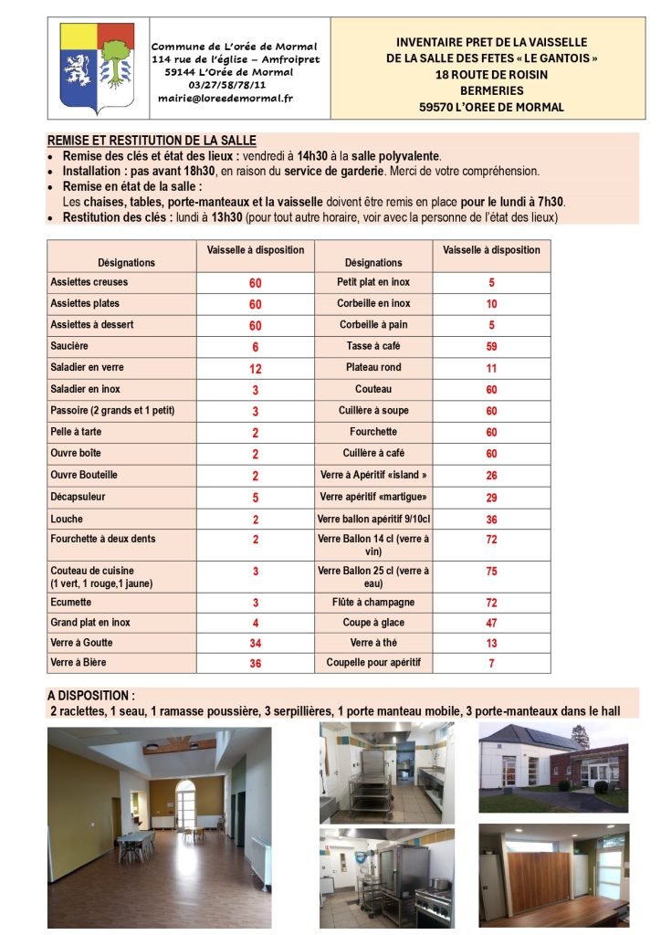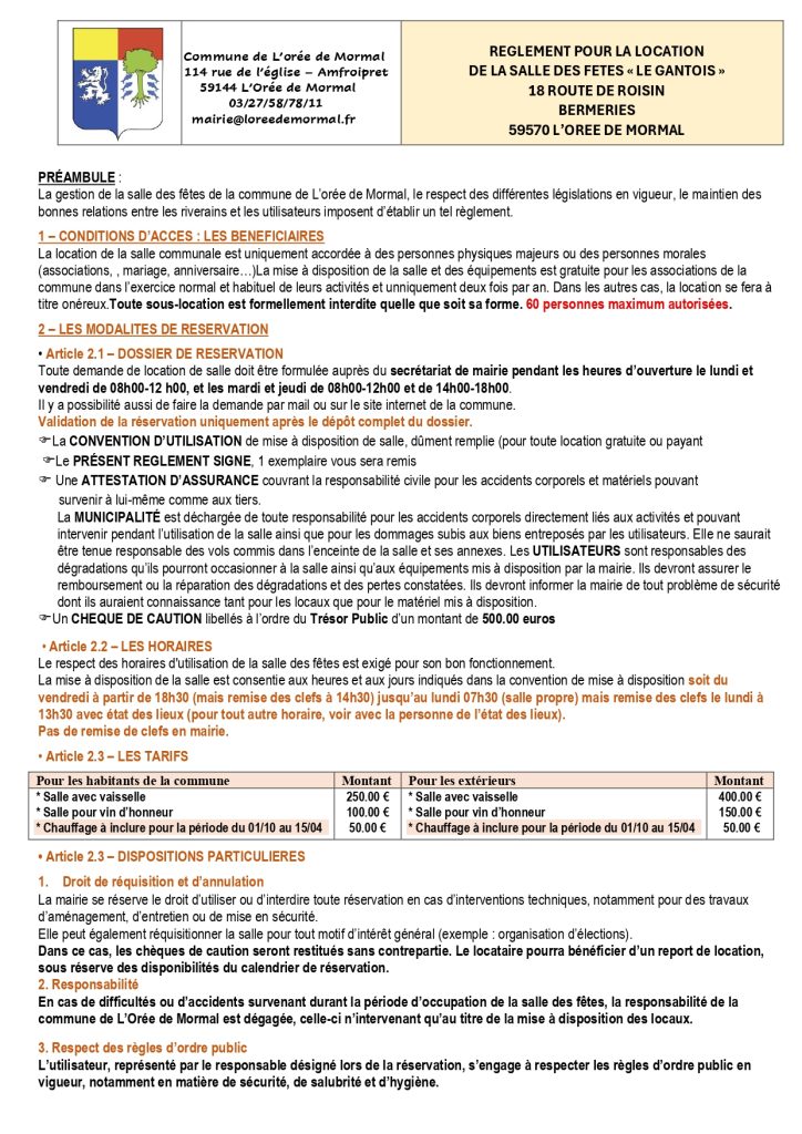 En cas d’évènements indépendants de la commune (élections…) la location de la salle peut être annulée.
